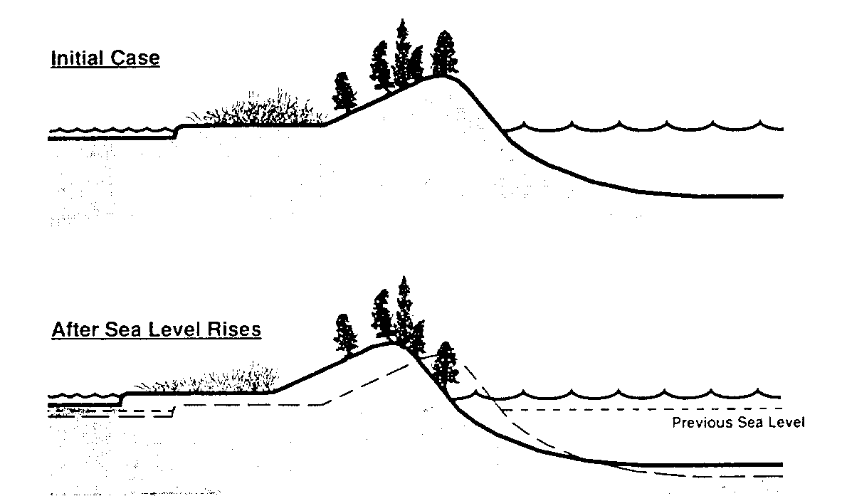 rising sea level. As sea level rises, sand is washed to the bay side of
