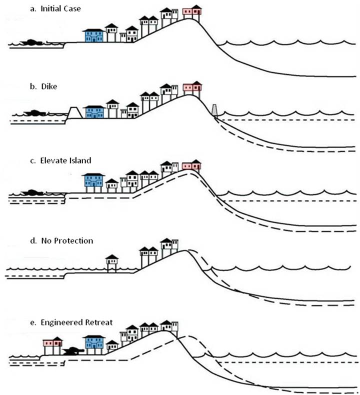 - Allow the island to erode on the ocean side, become submerged on the bay side, and possibly disintegrate and become uninhabitable (abandonment).